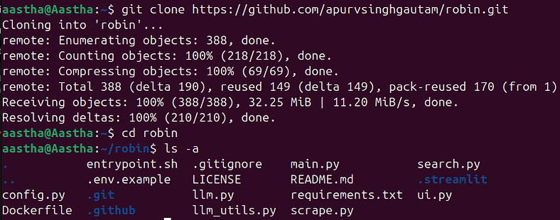git clone https://github.com/apurvsinghgautam/robin.git