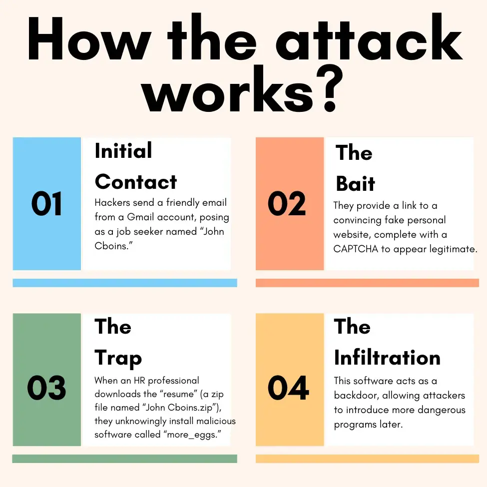 cybercriminals have noticed this flood of job applications and saw an opportunity. They’re now targeting the hiring process itself. By pretending to be job seekers, these attackers are trying to trick HR teams and sneak into companies. It’s a clever move that turns the job hunt into a potential security risk for businesses.