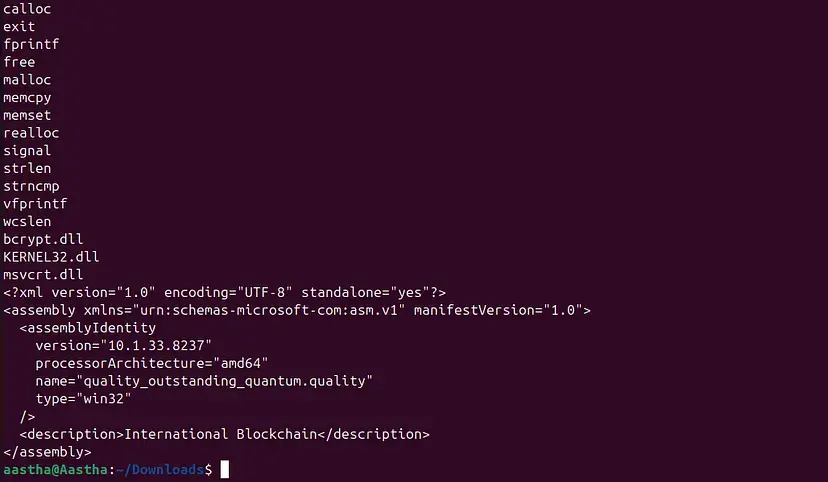 Now type ‘strings sample-malware1.exe’ to get the strings from the malware. You will get an ouput somewhat like this: